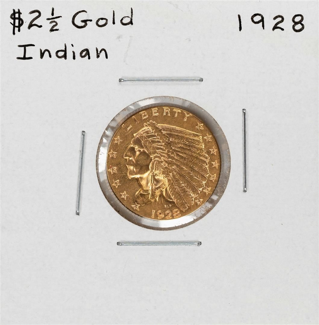 One 1928 $2 1/2 Indian Head Quarter Eagle Gold Coin.