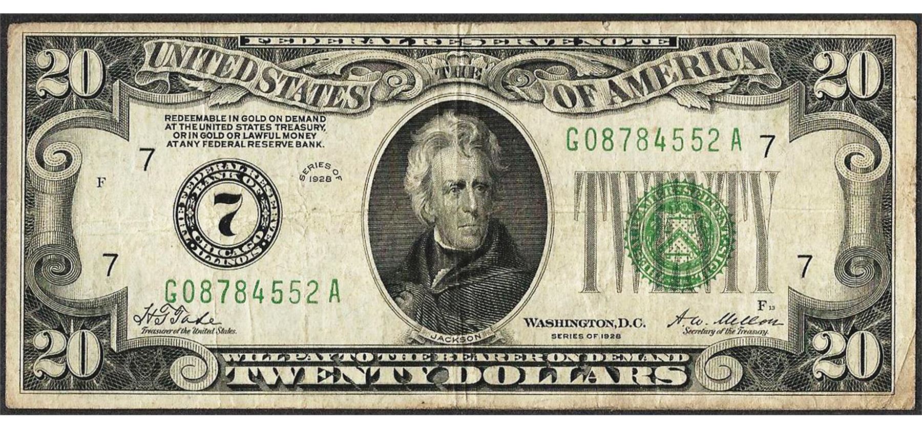 1928 $20 Federal Reserve Note Chicago - Redeemable in Gold