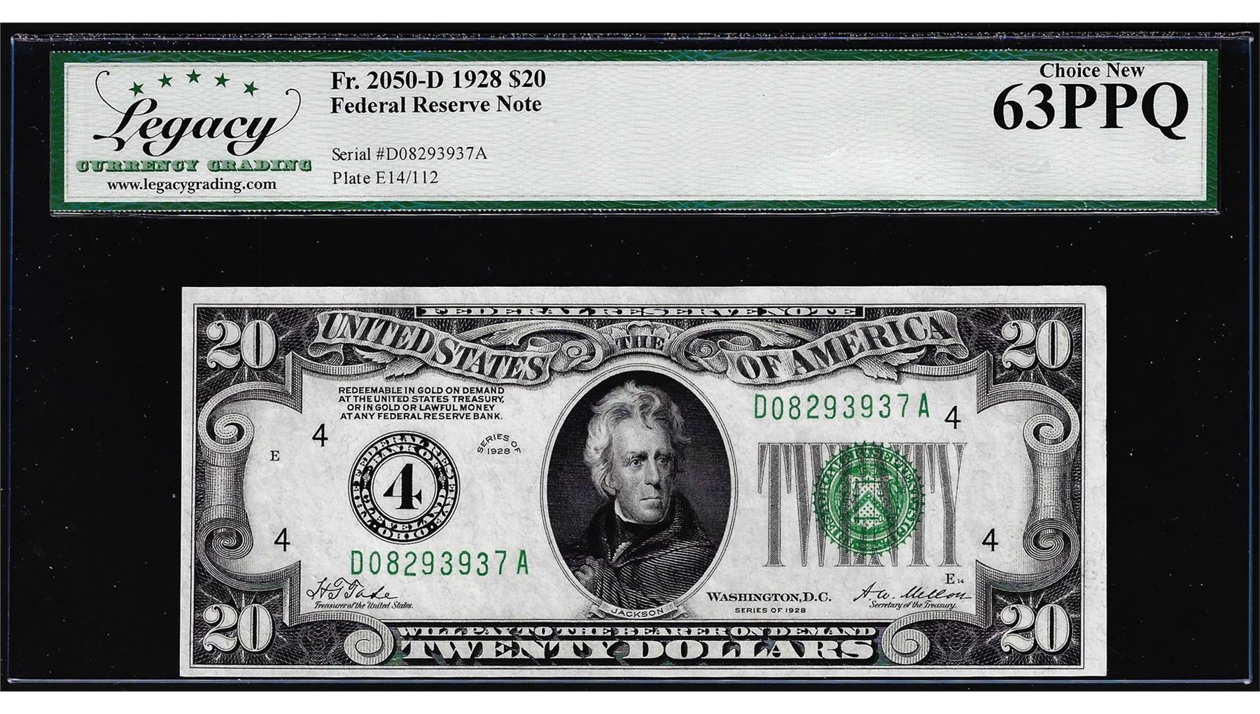 1928 $20 Federal Reserve Note Cleveland Fr.2050-D Legacy Choice New 63PPQ