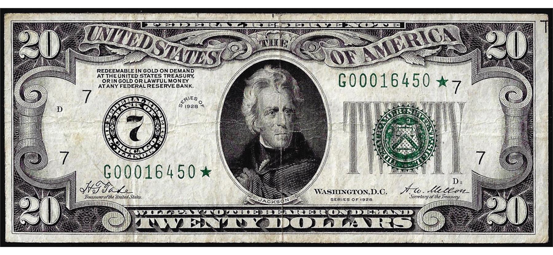 One 1928 $20 Federal Reserve Note STAR Chicago.