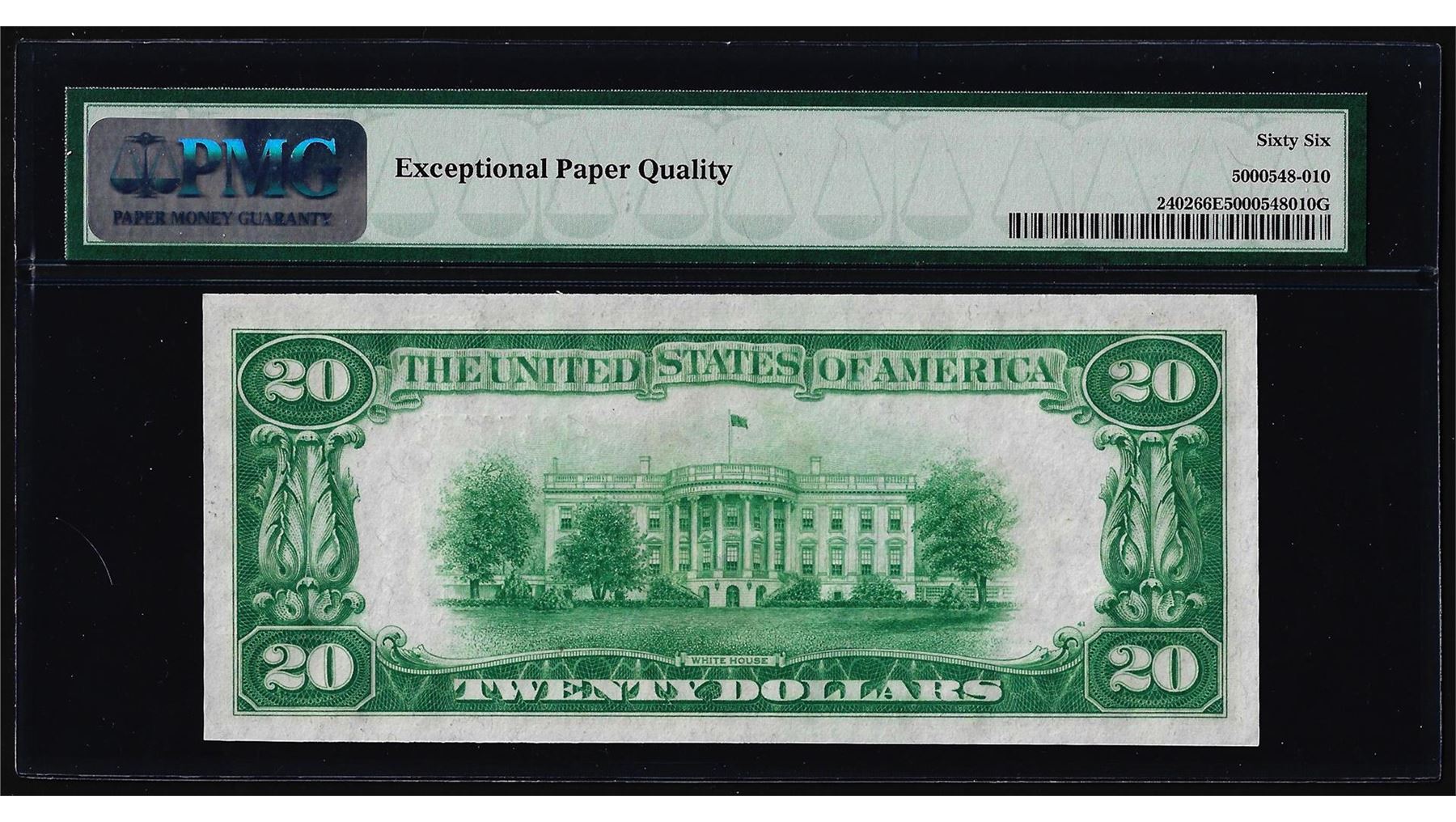 One 1928 $20 Gold Certificate Note Fr.2402 PMG Gem Uncirculated 66EPQ. PMG Certified.