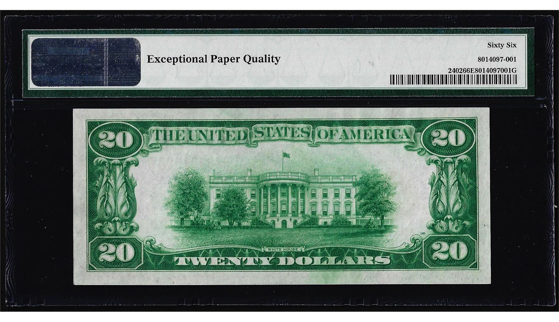 One 1928 $20 Gold Certificate Note Fr.2402 PMG Gem Uncirculated 66EPQ. PMG Certified.