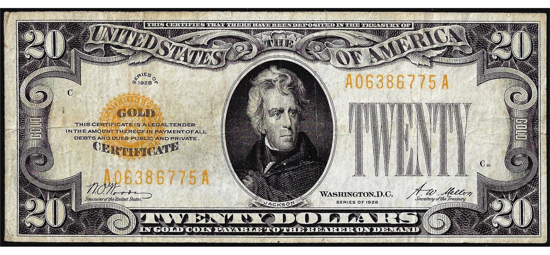 One 1928 $20 Gold Certificate Note.