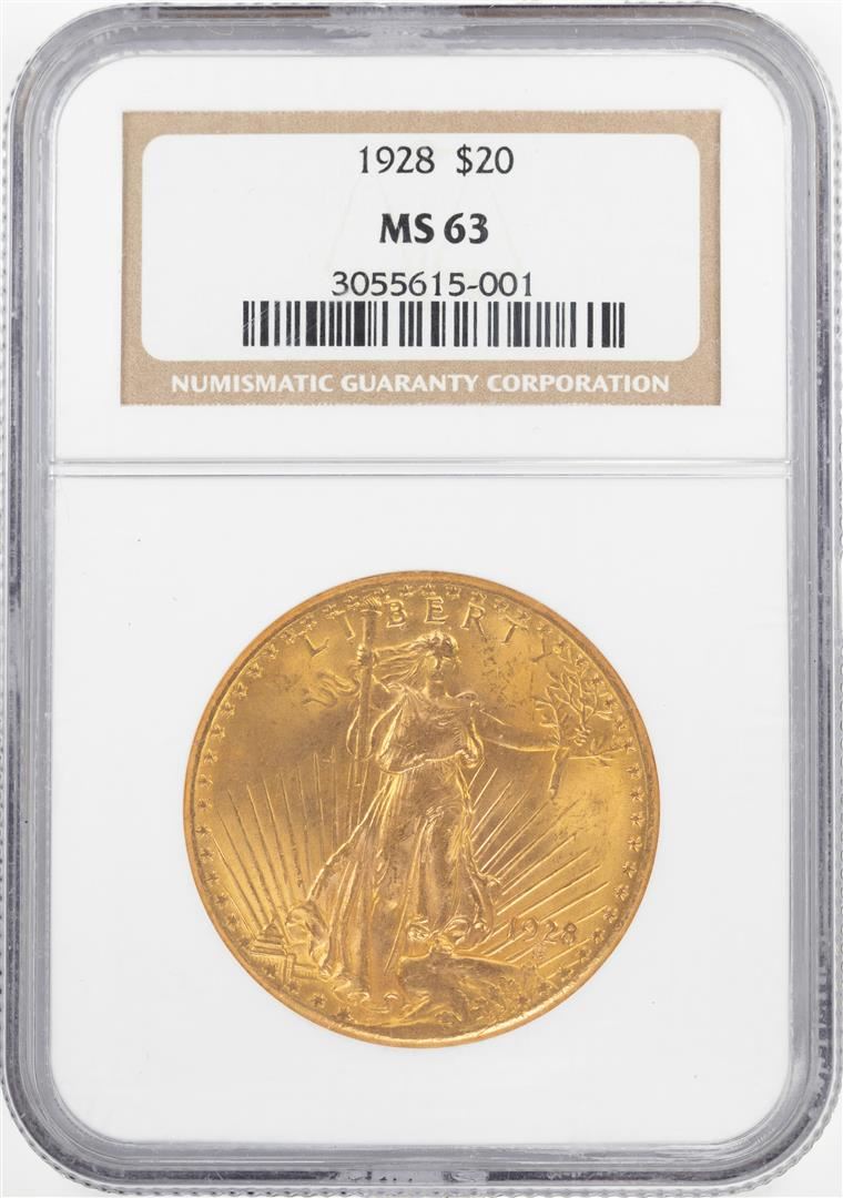 One 1928 $20 St. Gaudens Double Eagle Gold Coin NGC MS63. NGC Certified.