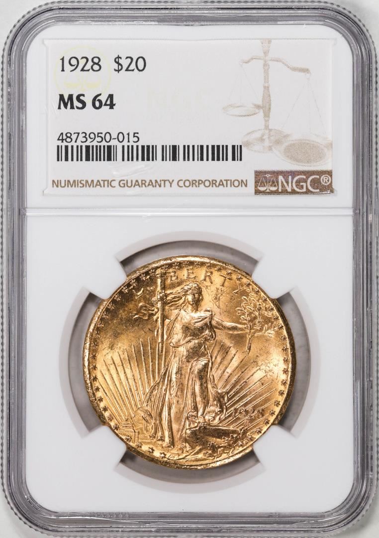 One 1928 $20 St. Gaudens Double Eagle Gold Coin NGC MS64. NGC Certified.