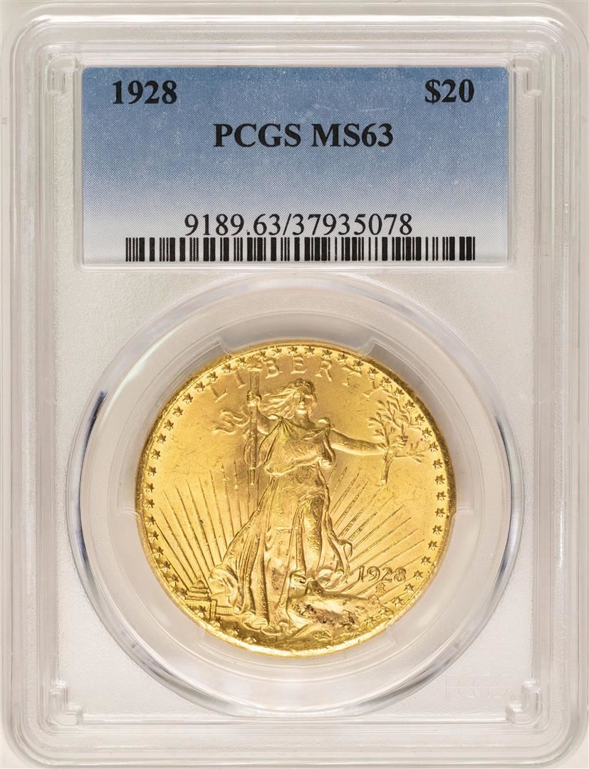 One 1928 $20 St. Gaudens Double Eagle Gold Coin PCGS MS63. PCGS Graded.