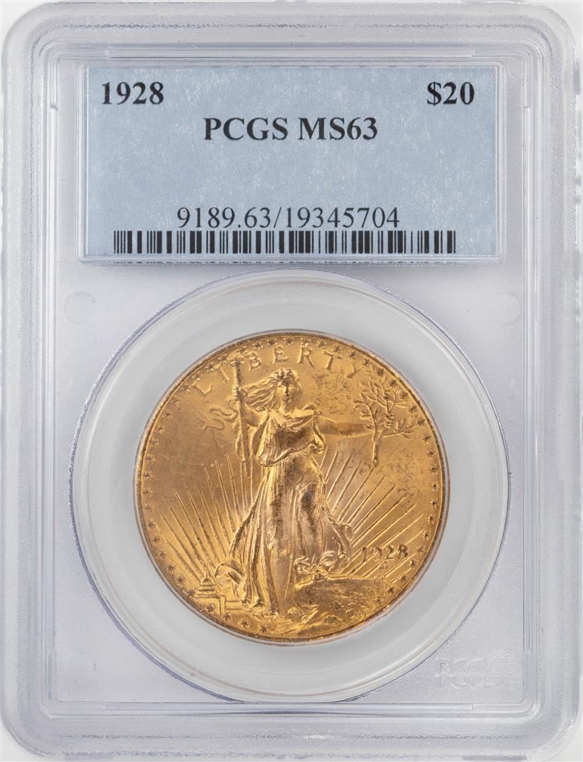 One 1928 $20 St Gaudens Double Eagle Gold Coin PCGS MS63. PCGS Graded.