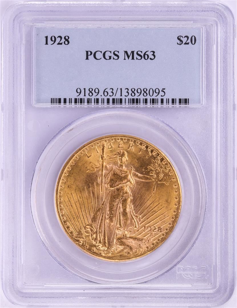 One 1928 $20 St. Gaudens Double Eagle Gold Coin PCGS MS63. PCGS Graded.