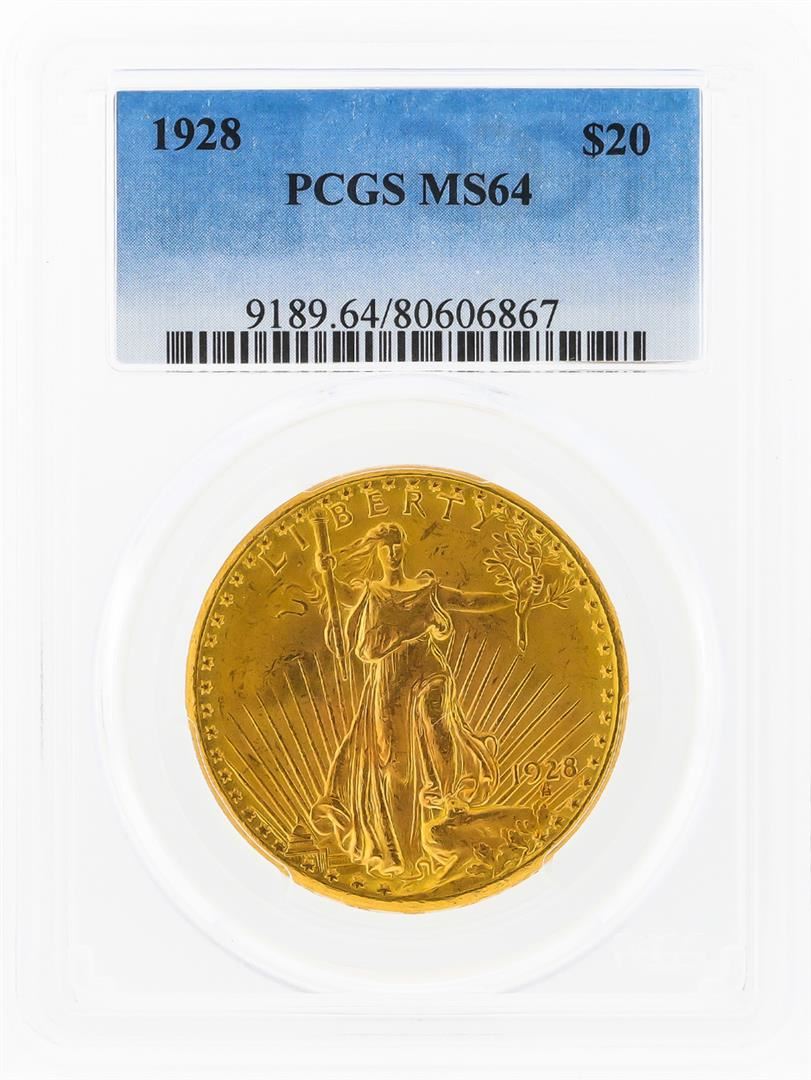 One 1928 $20 St. Gaudens Double Eagle Gold Coin PCGS MS64. PCGS Graded.