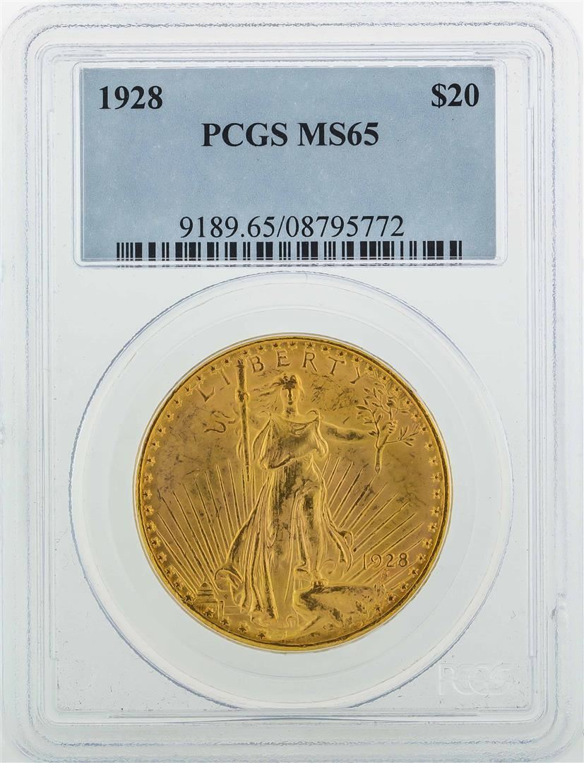 One 1928 $20 St. Gaudens Double Eagle Gold Coin PCGS MS65. PCGS Graded.