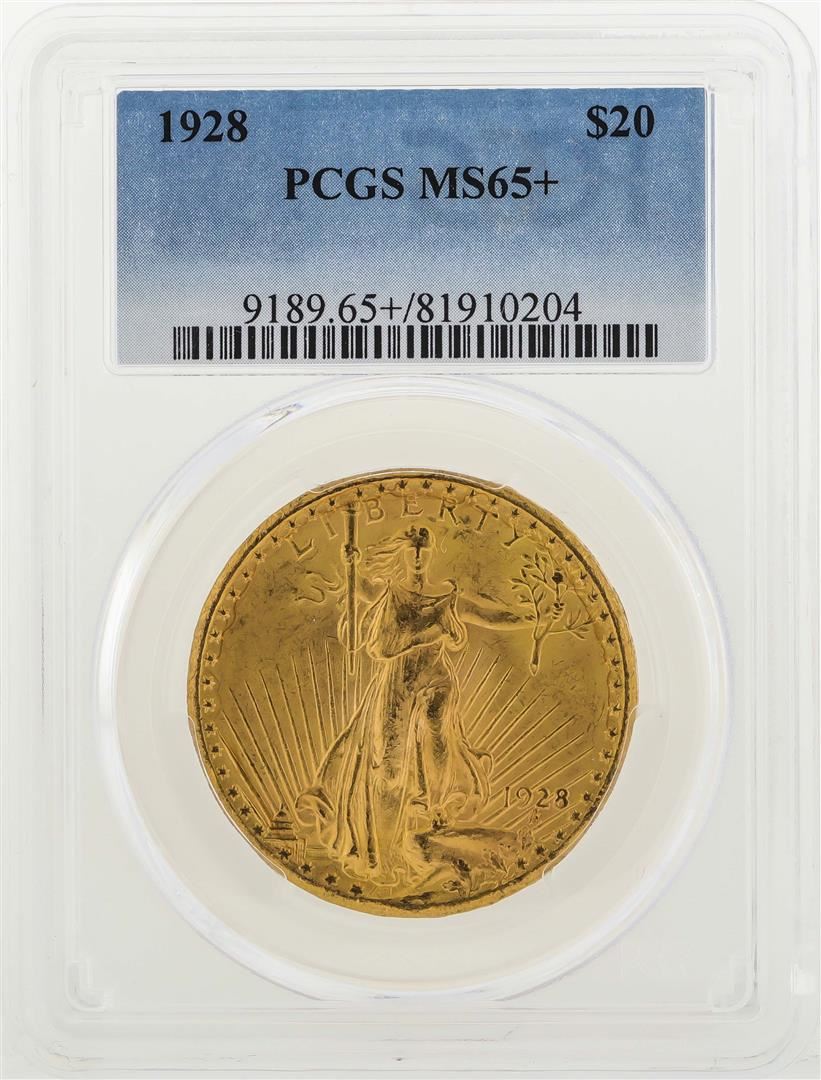 One 1928 $20 St. Gaudens Double Eagle Gold Coin PCGS MS65+. PCGS Graded.