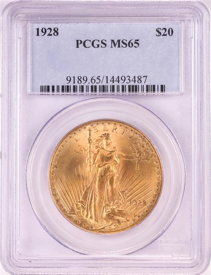 One 1928 $20 St. Gaudens Double Eagle Gold Coin PCGS MS65.