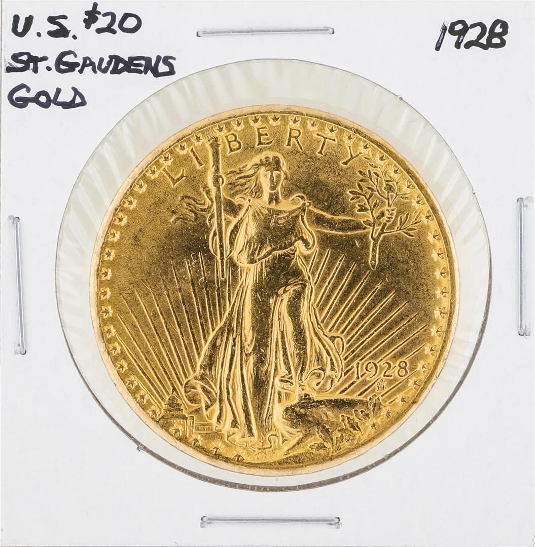 One 1928 $20 St. Gaudens Double Eagle Gold Coin.
