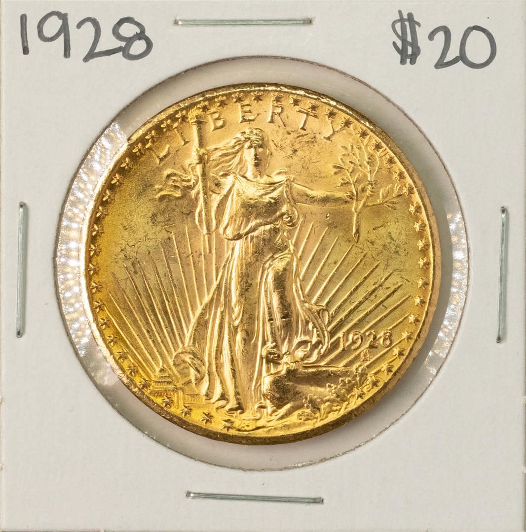 One 1928 $20 St. Gaudens Double Eagle Gold Coin.