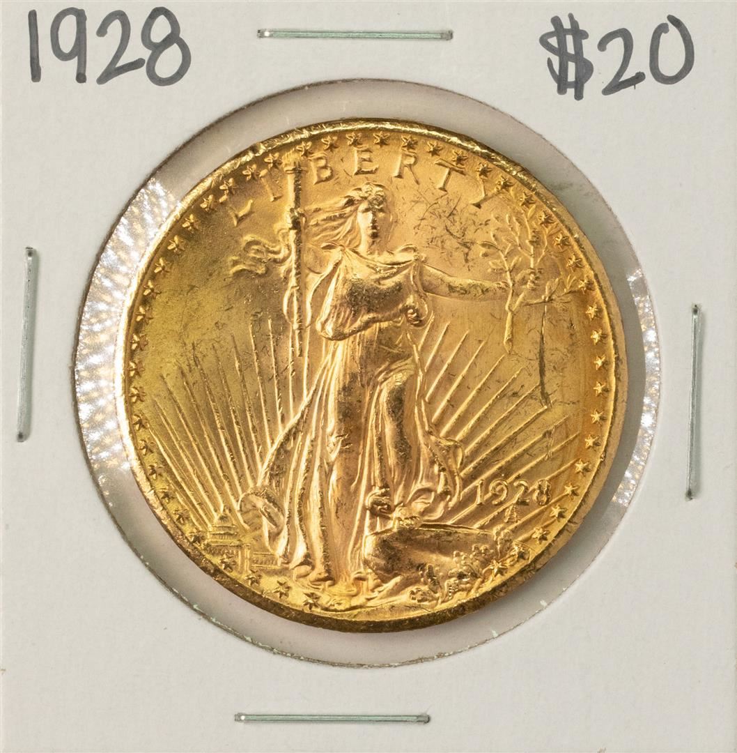 One 1928 $20 St. Gaudens Double Eagle Gold Coin.