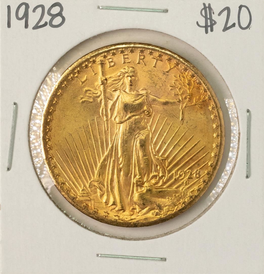 One 1928 $20 St. Gaudens Double Eagle Gold Coin.