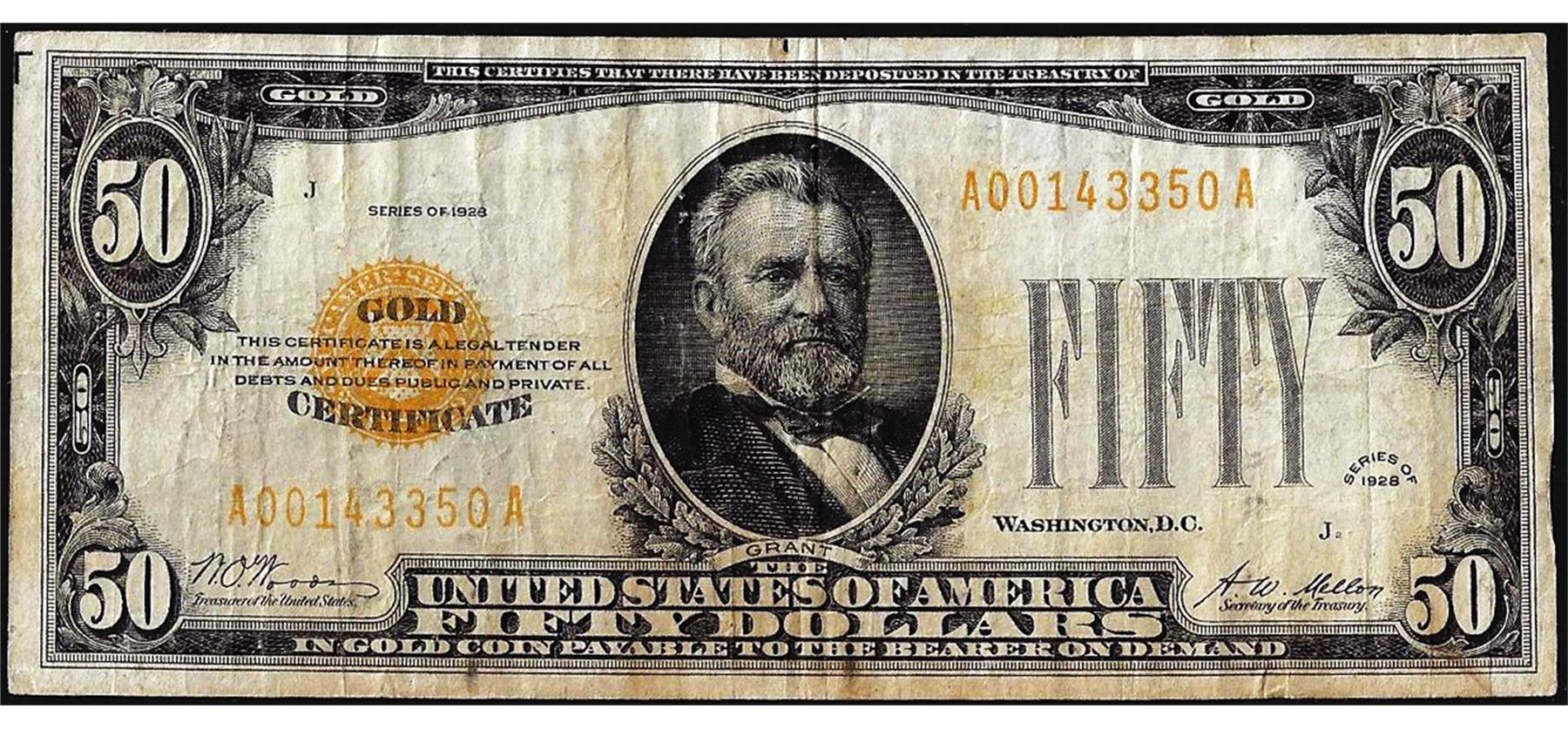One 1928 $50 Gold Certificate Note.