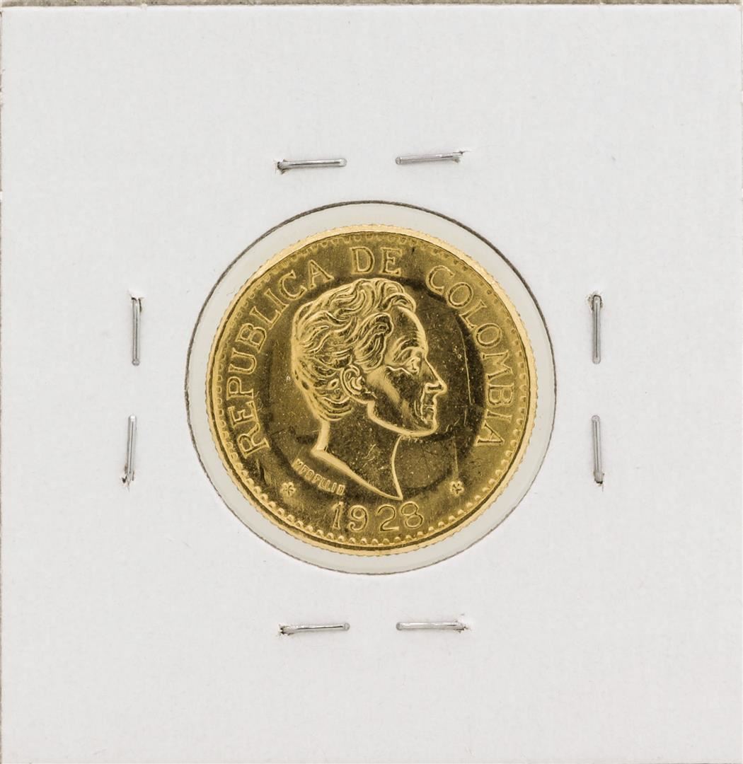 One 1928 Columbia 5 Pesos Gold Coin.