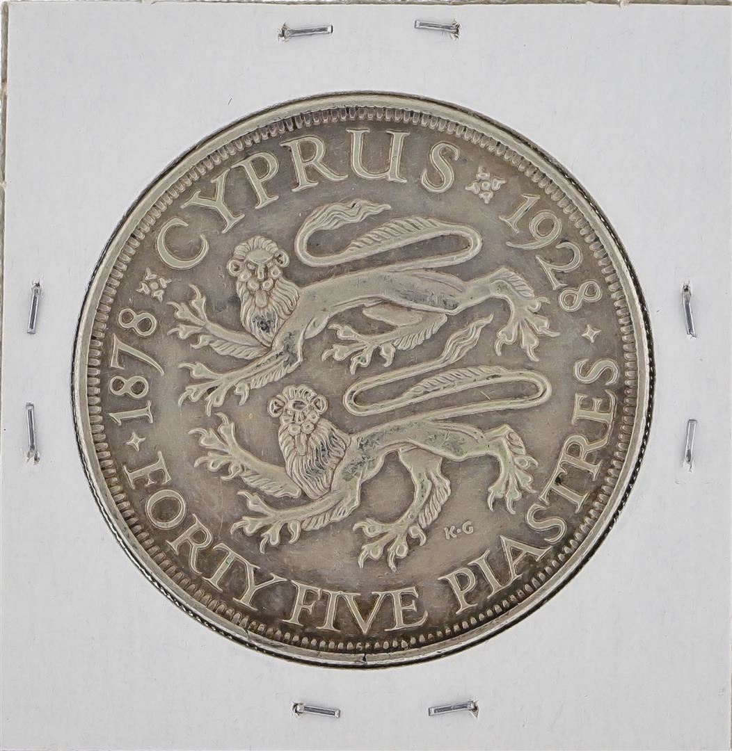 One 1928 Cyprus 45 Piastres Silver Coin.