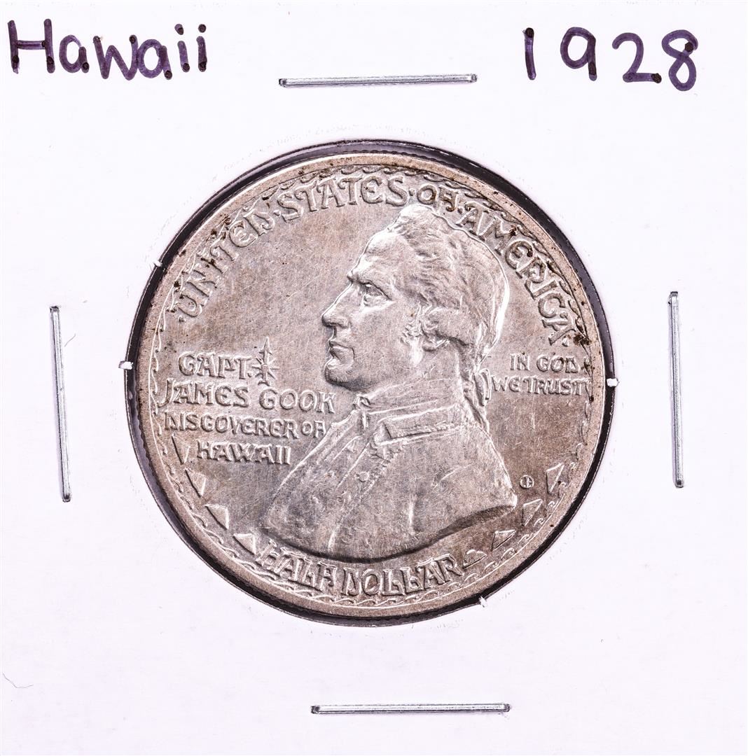 One 1928 Hawaii Commemorative Silver Half Dollar Coin.