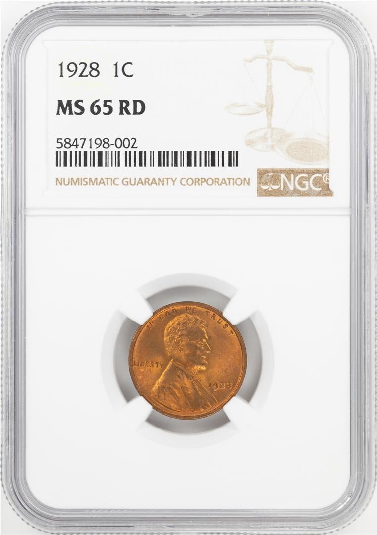 One 1928 Lincoln Wheat Cent Coin NGC MS65RD. NGC Certified.