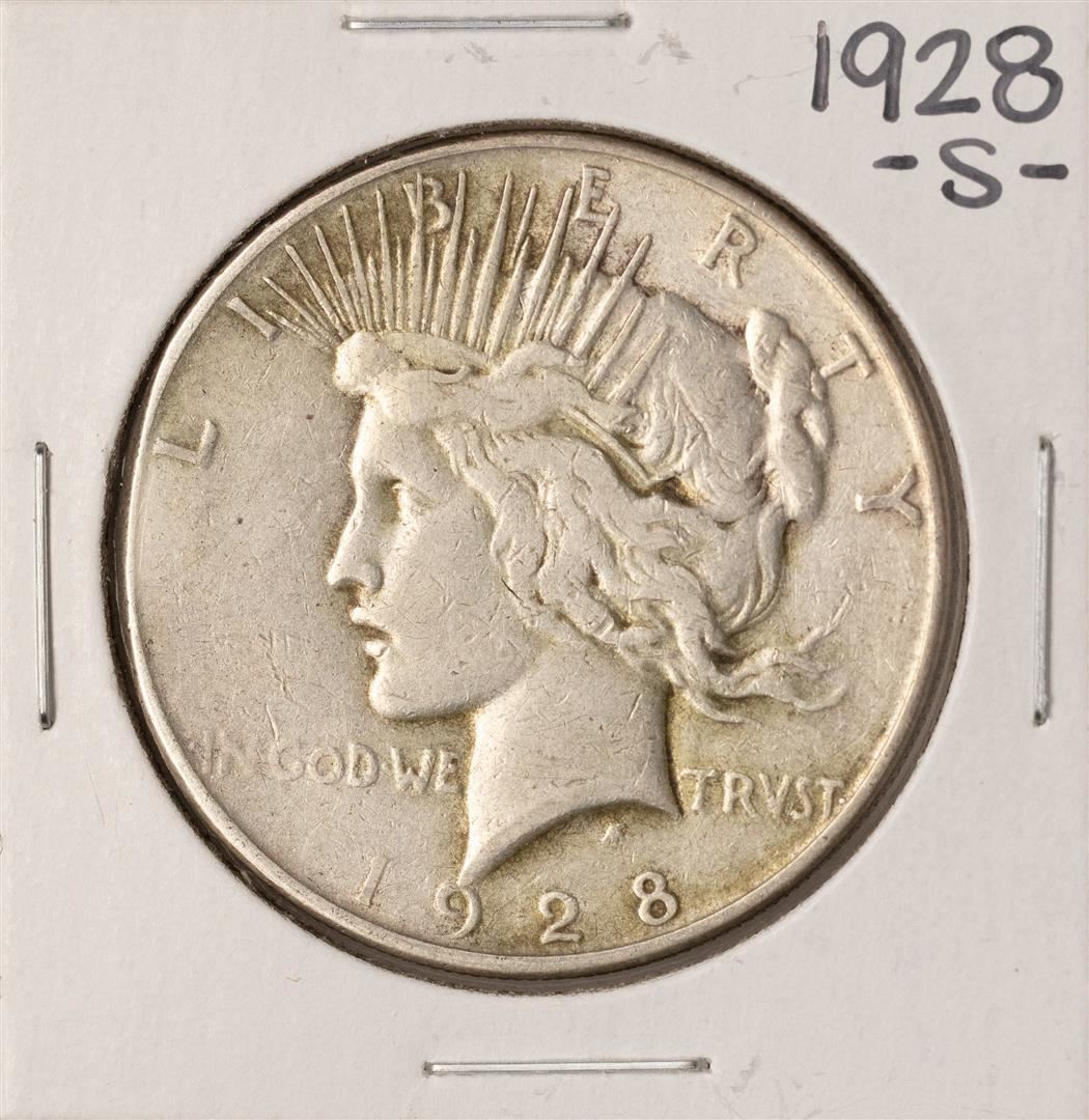 One 1928-S $1 Peace Silver Dollar Coin.