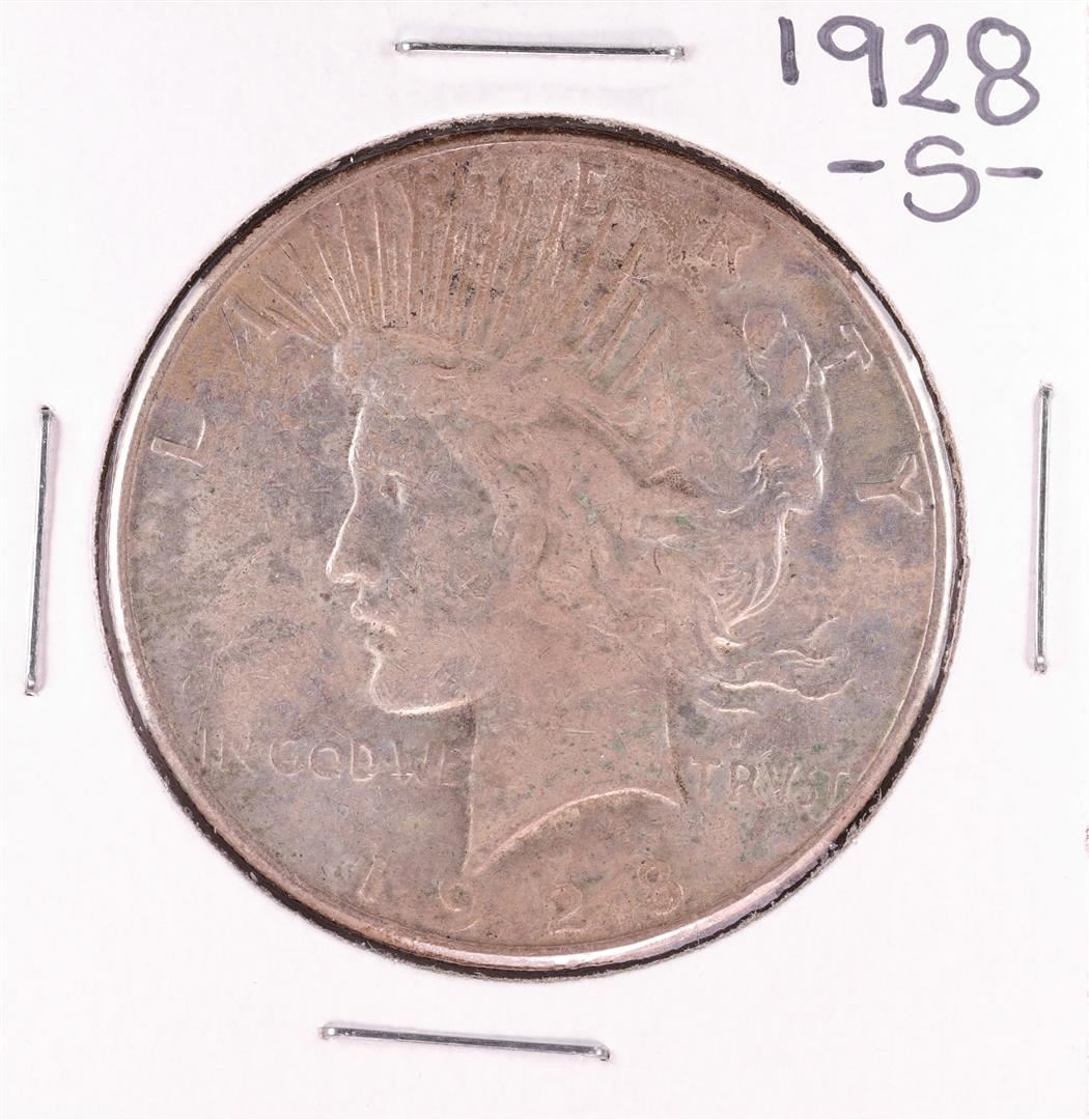 One 1928-S $1 Peace Silver Dollar Coin.