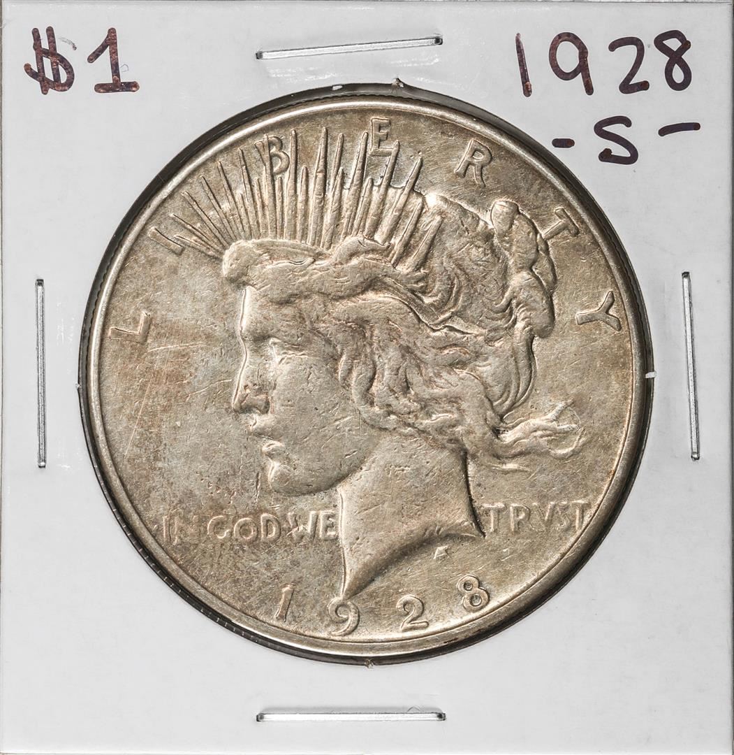 One 1928-S $1 Peace Silver Dollar Coin.