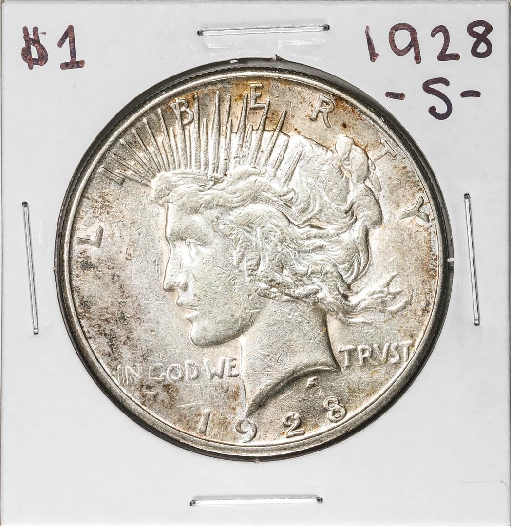 One 1928-S $1 Peace Silver Dollar Coin.