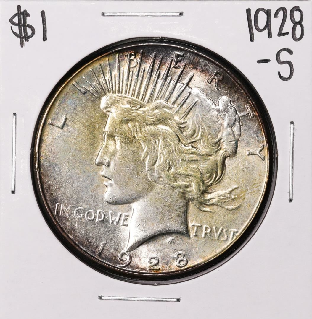 One 1928-S $1 Peace Silver Dollar Coin.