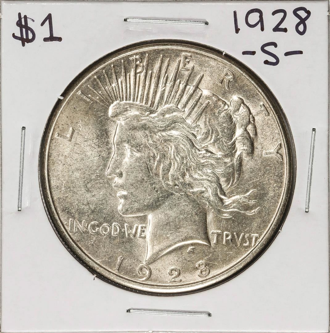 One 1928-S $1 Peace Silver Dollar Coin.