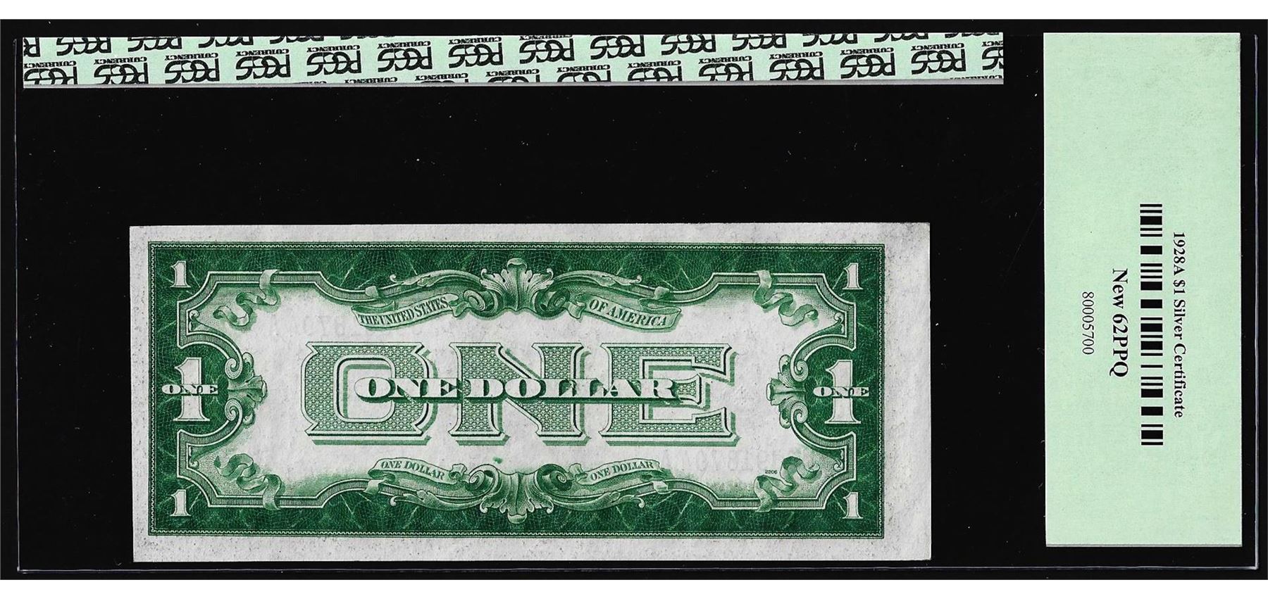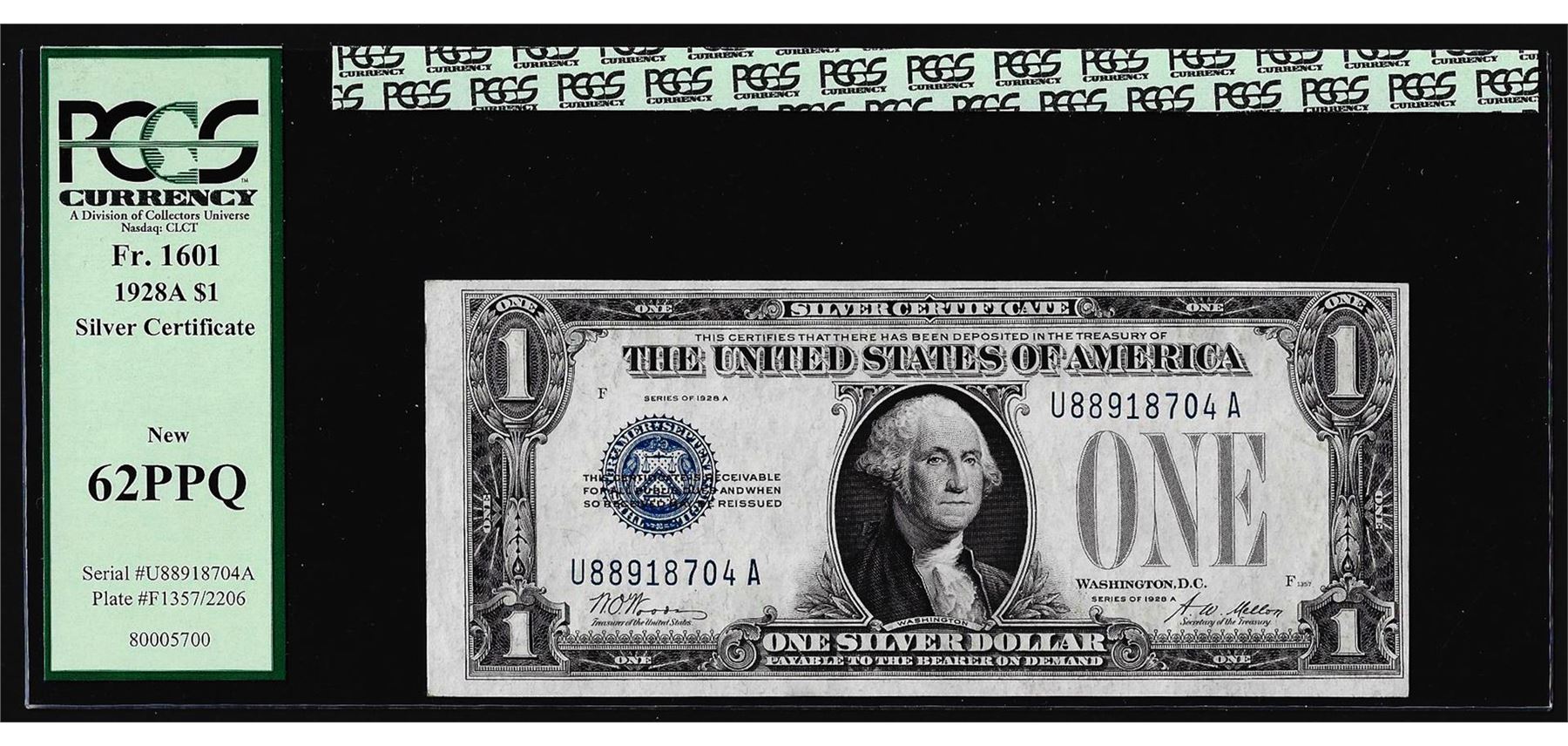 One 1928A $1 Funnyback Silver Certificate Note Fr.1601 PCGS New 62PPQ. PCGS Graded.
