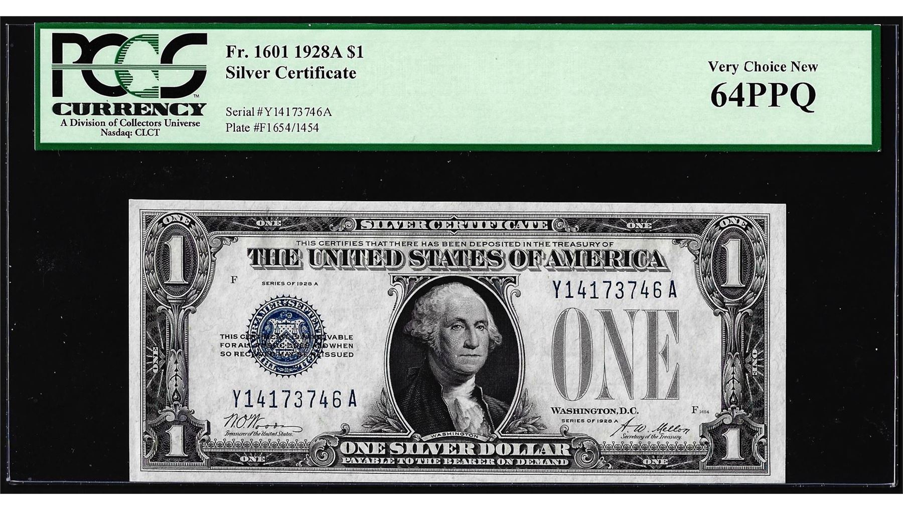 One 1928A $1 Funnyback Silver Certificate Note Fr.1601 PCGS Very Choice New 64PPQ. PCGS Graded.