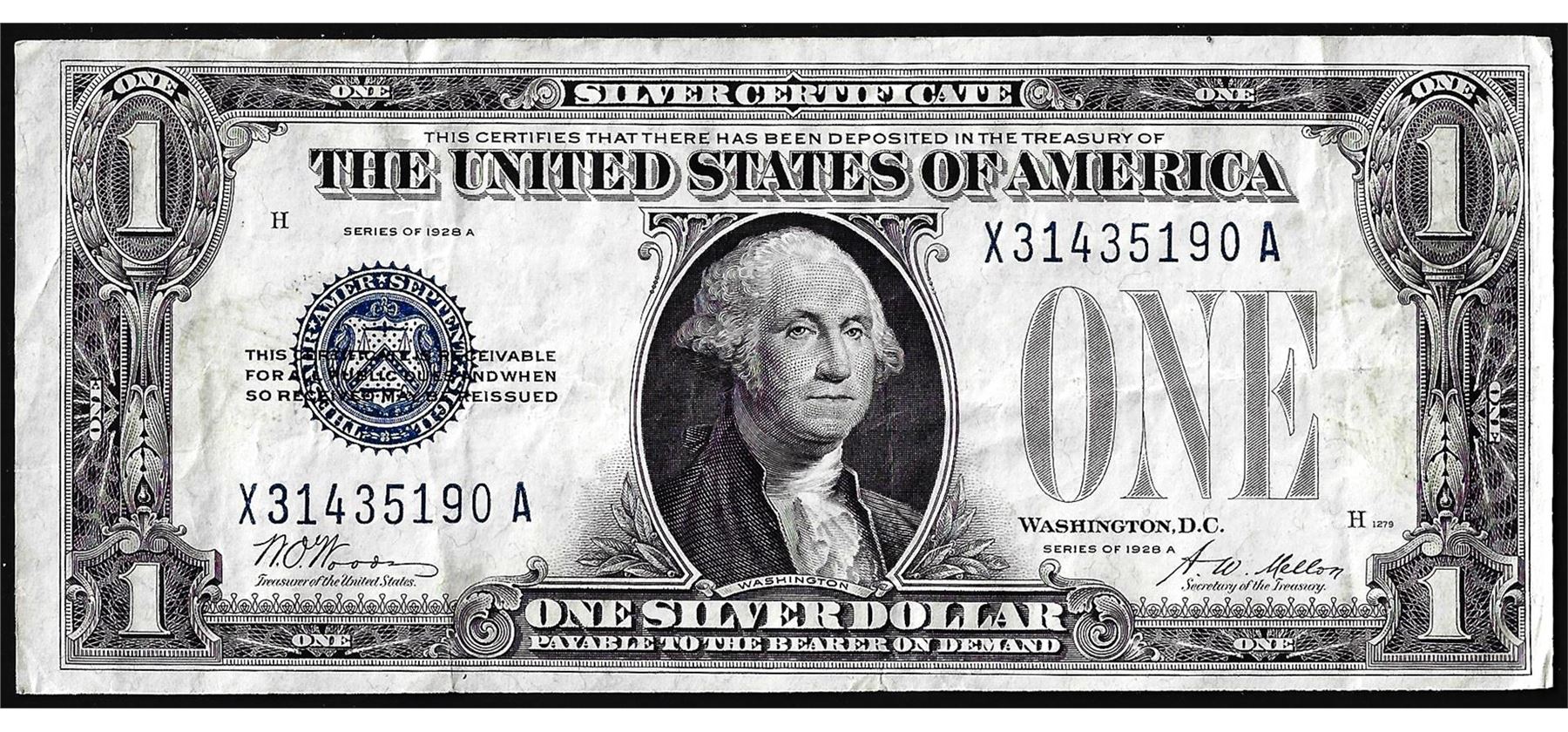One 1928A $1 Funnyback Silver Certificate Note.