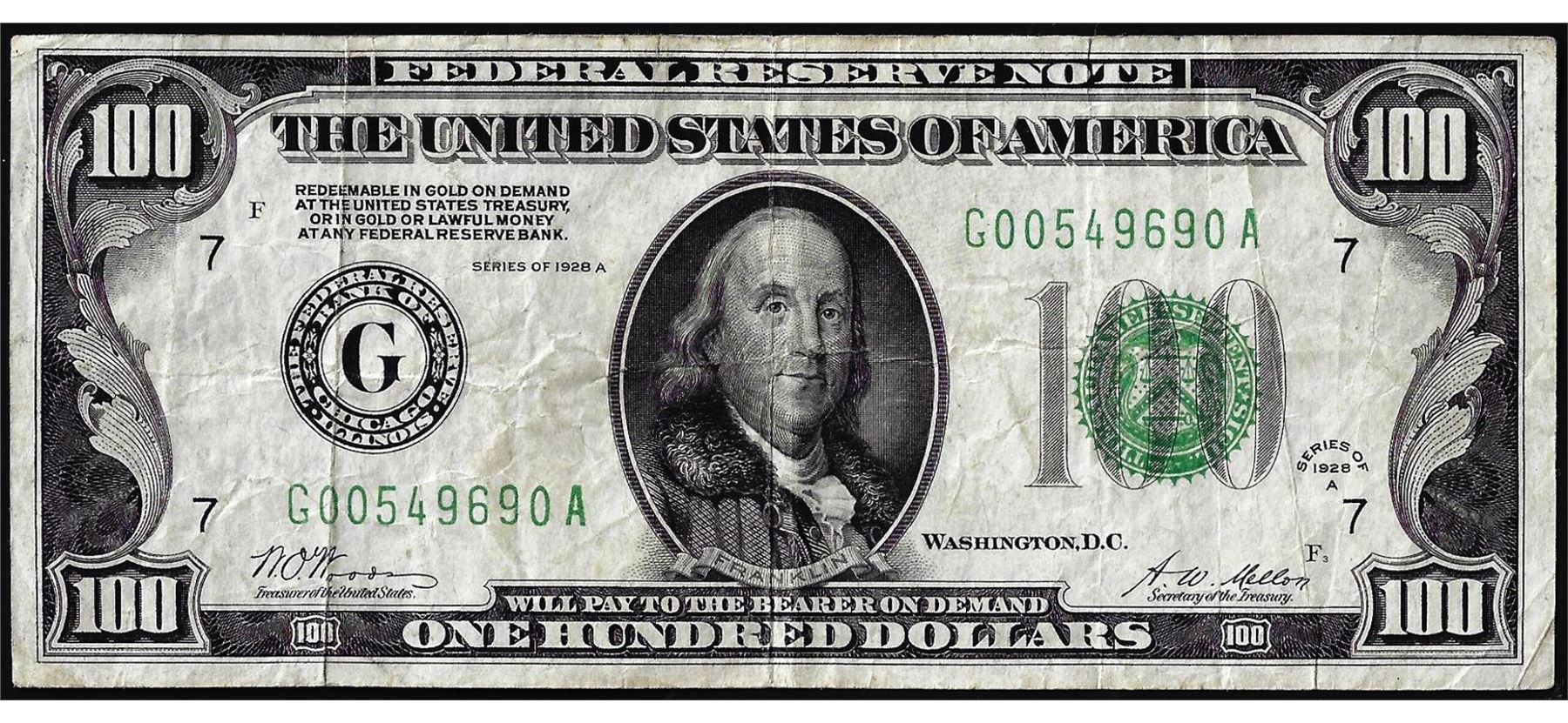 One 1928A $100 Federal Reserve Note Chicago.
