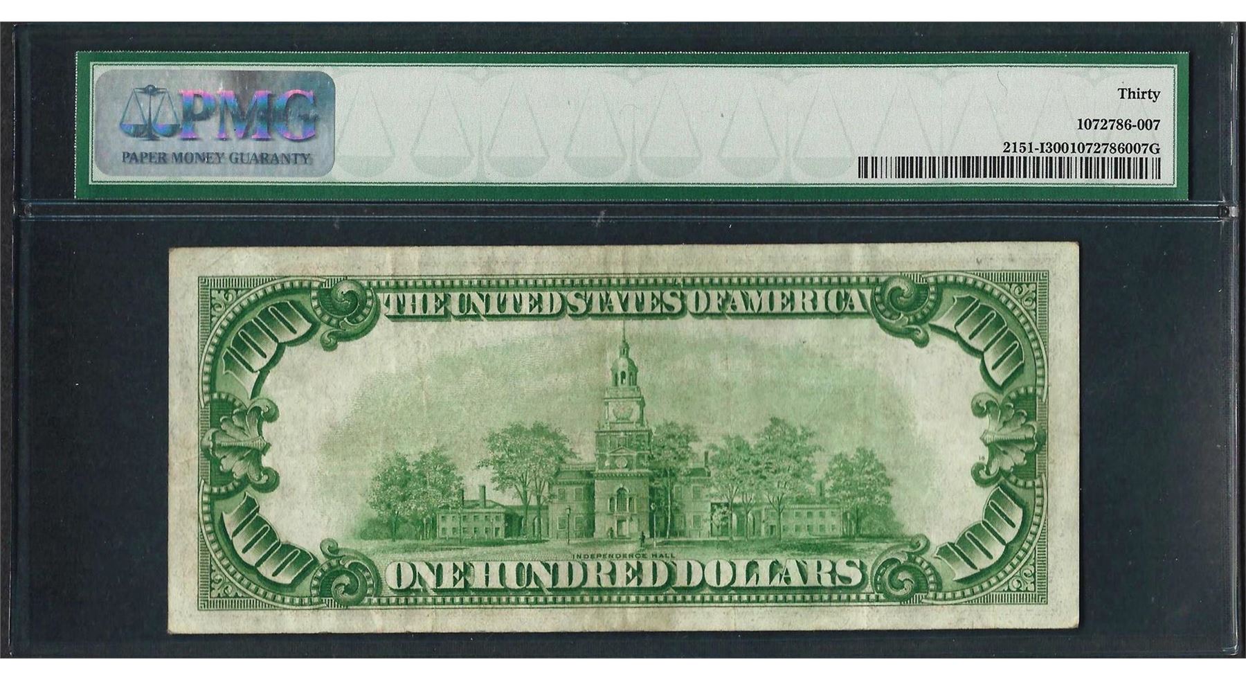 One 1928A $100 Federal Reserve Note Minneapolis Fr.2151-I PMG Very Fine 30. PMG Certified.