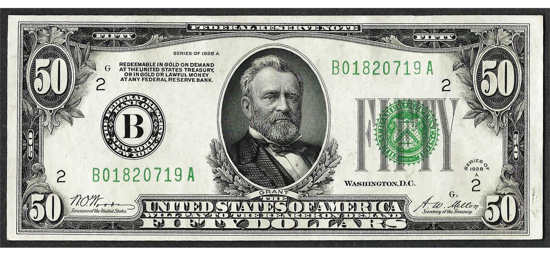 One 1928A $50 Federal Reserve Note.