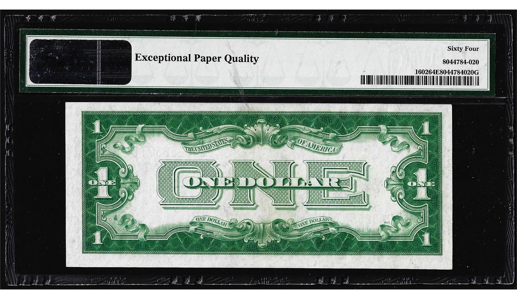 One 1928B $1 Funnyback Silver Certificate Note PMG Choice Uncirculated 64EPQ. PMG Certified.