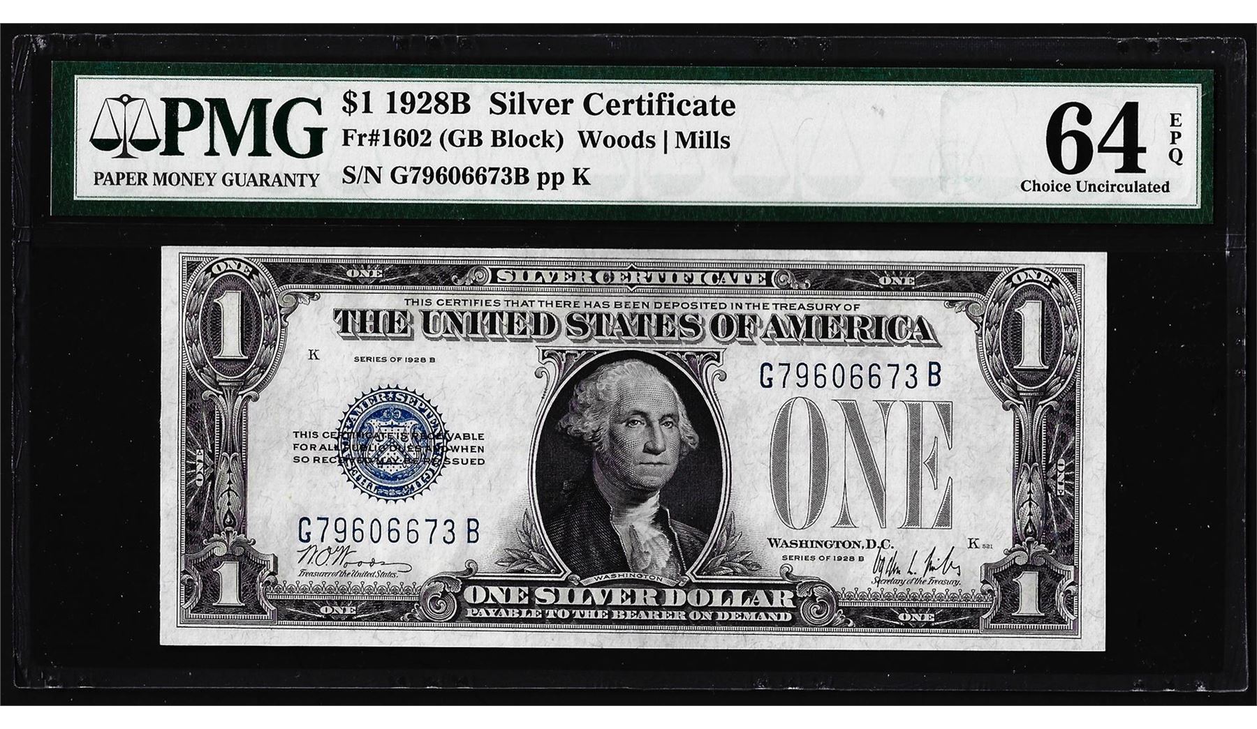 1928B $1 Silver Certificate Note Fr.1602 PMG Choice Uncirculated 64EPQ