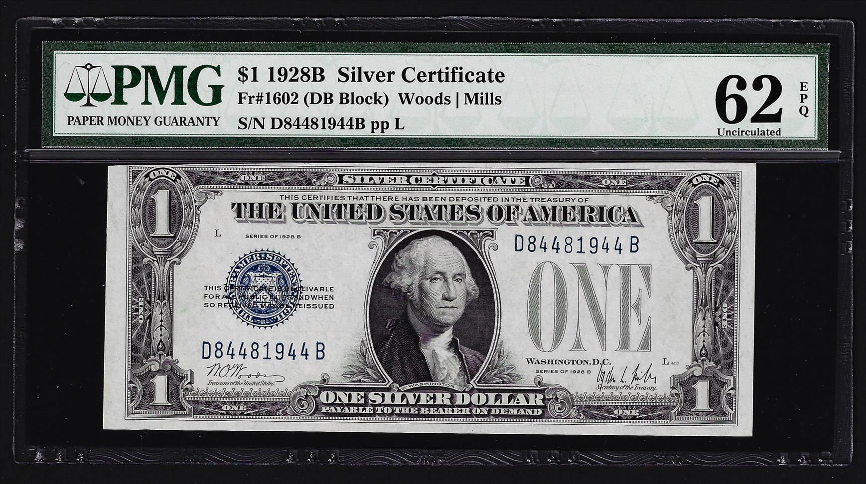 One 1928B $1 Silver Certificate Note PMG Uncirculated 62EPQ. PMG Certified.