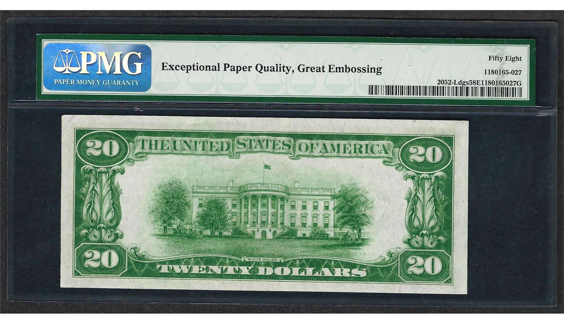 1928B $20 Federal Reserve Note Fr.2052-L PMG Choice About Uncirculated 58EPQ