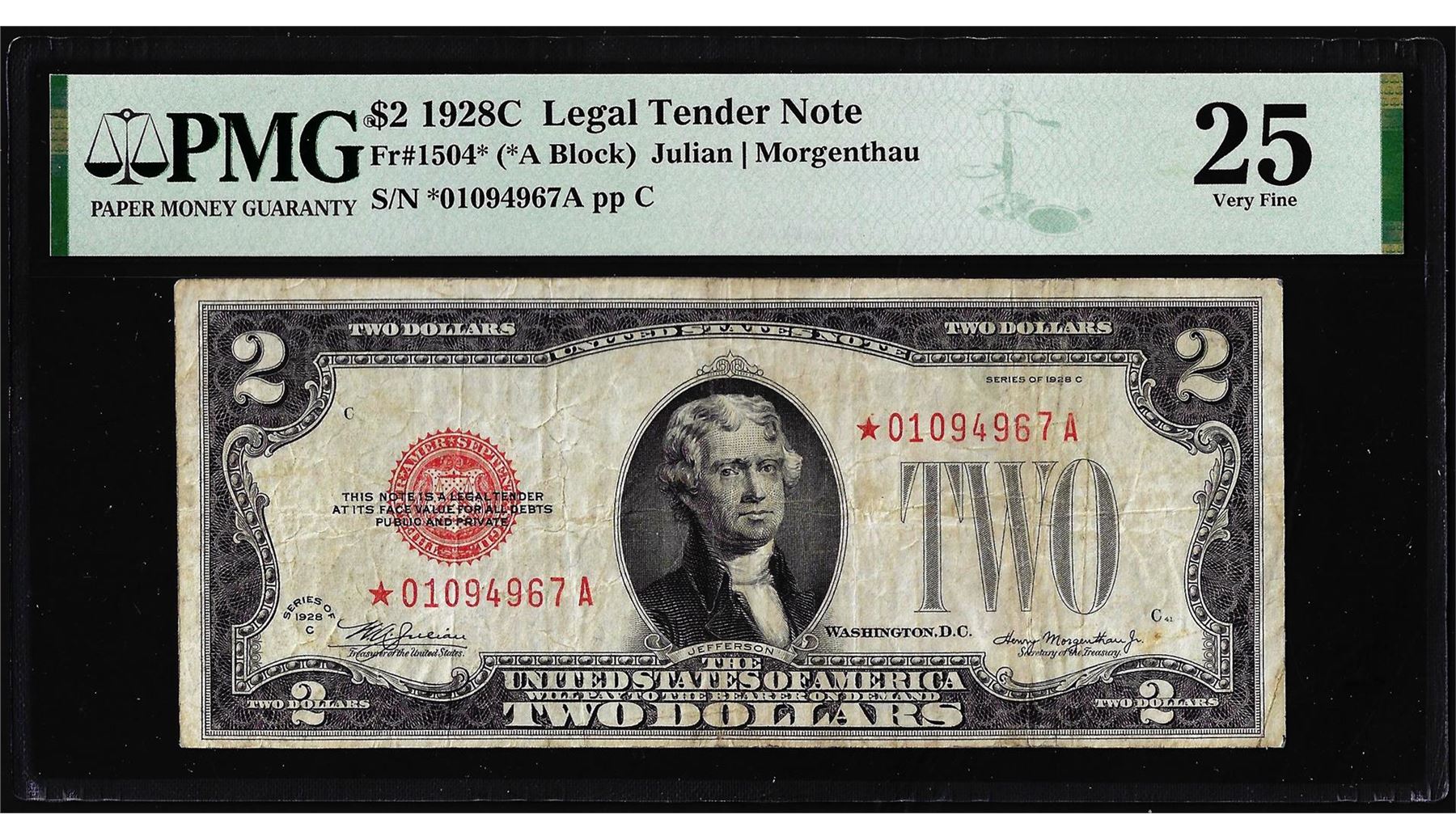 One 1928C $2 Legal Tender Star Note Fr.1504* PMG Very Fine 25. PMG Certified.