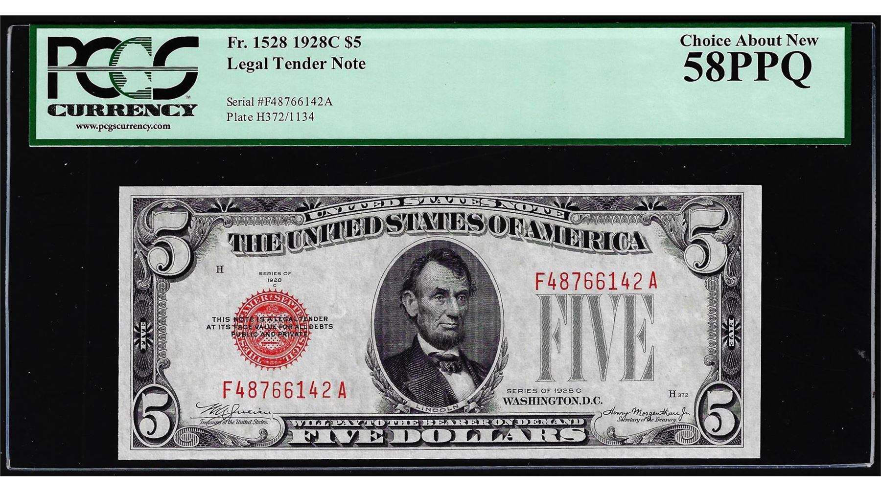 1928C $5 Legal Tender Note Fr.1528 PCGS Choice About New 58PPQ