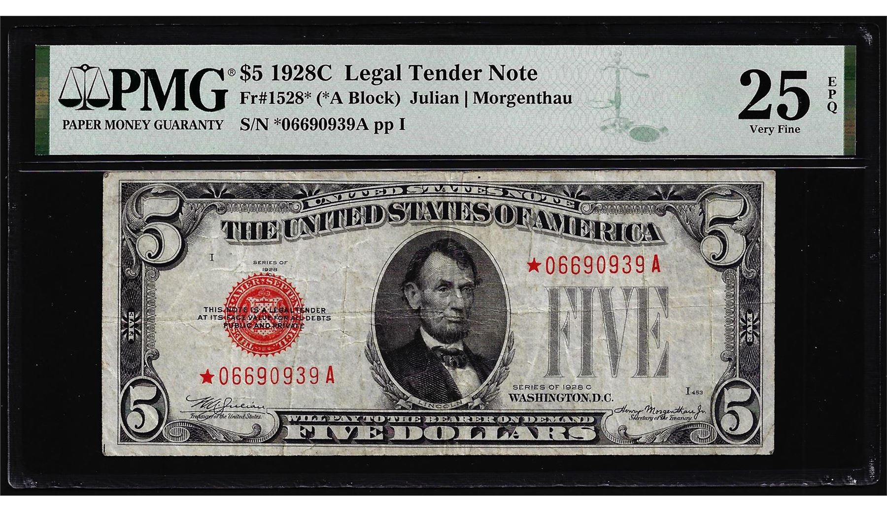 1928C $5 Legal Tender STAR Note Fr.1528* PMG Very Fine 25EPQ