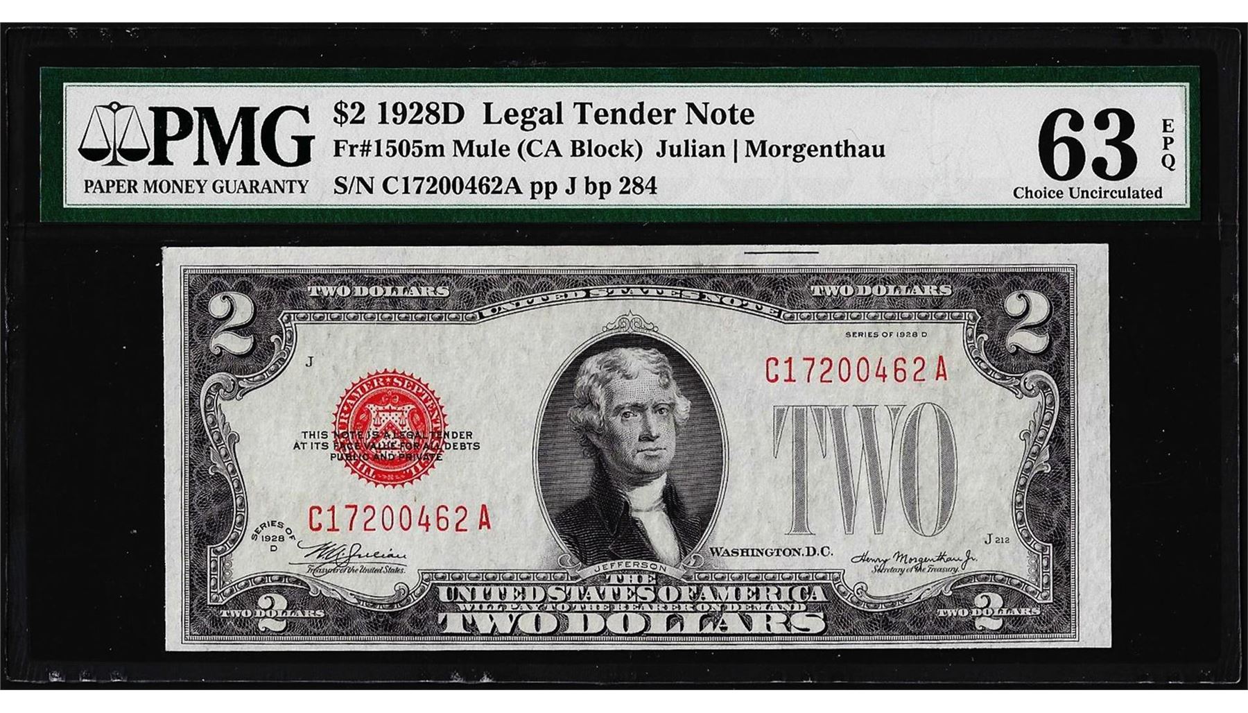 1928D $2 Legal Tender Note Fr.1505m PMG Choice Uncirculated 63EPQ