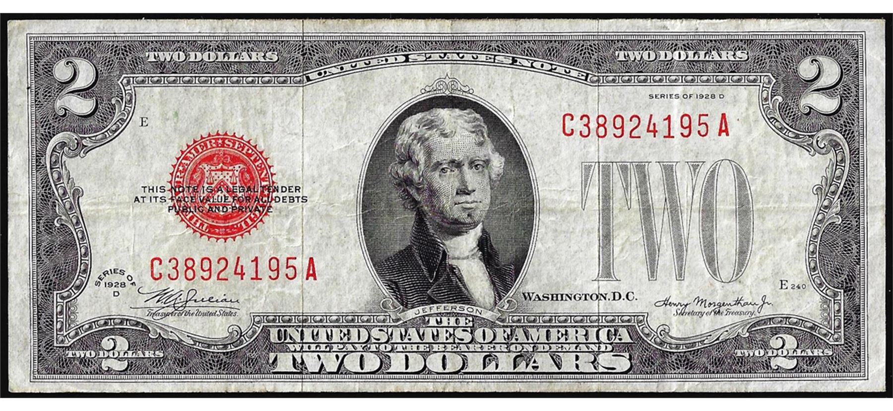 One 1928D $2 Legal Tender Note Printing Shift ERROR.