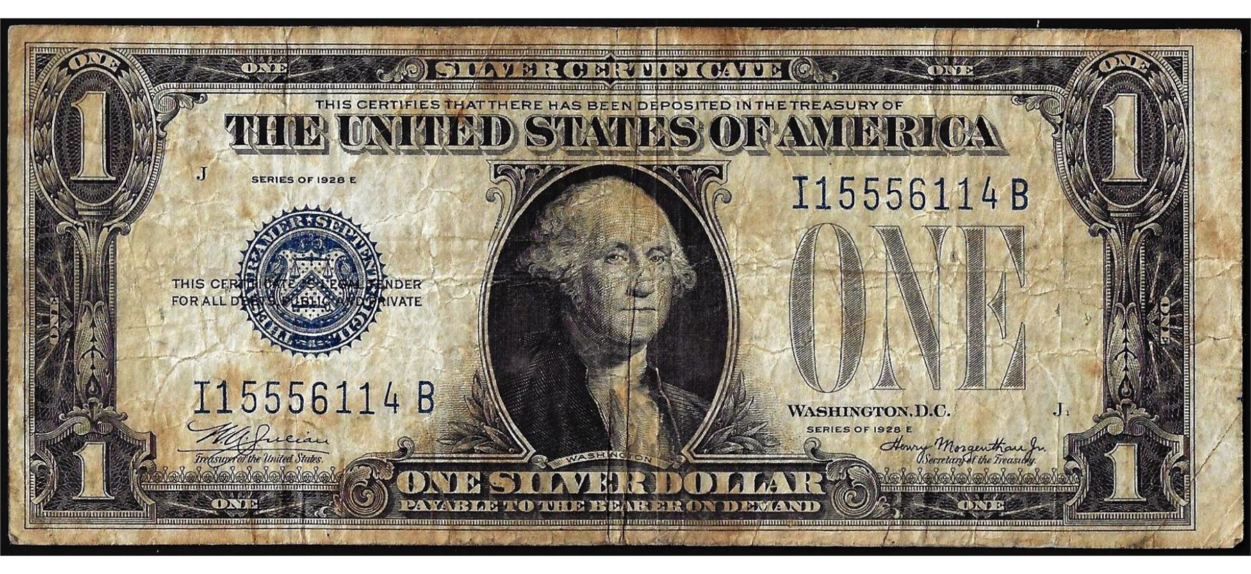 One 1928E $1 Funnyback Silver Certificate Note.