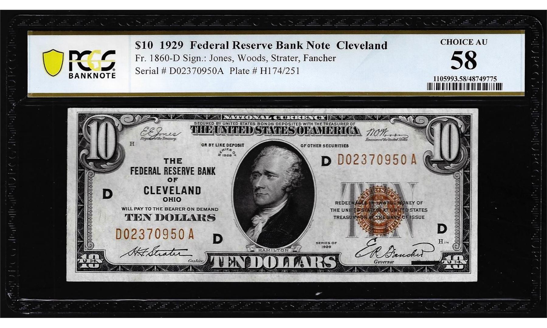 1929 $10 Federal Reserve Bank Note Cleveland Fr.1860-D PCGS Choice AU 58