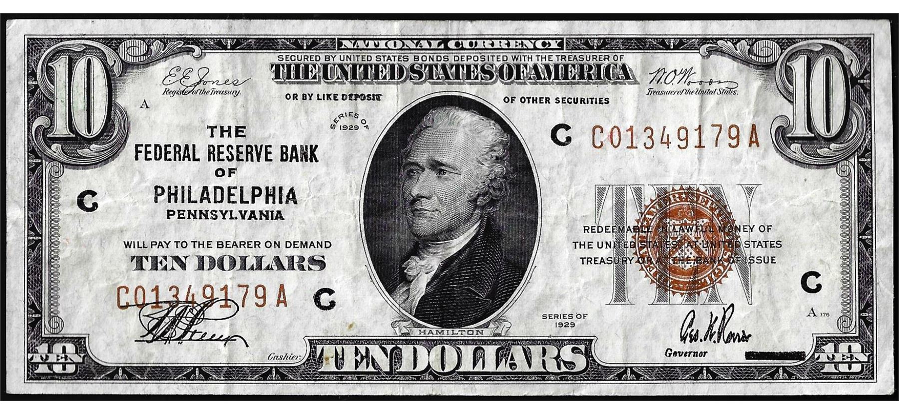 1929 $10 Federal Reserve Bank Note Philadelphia