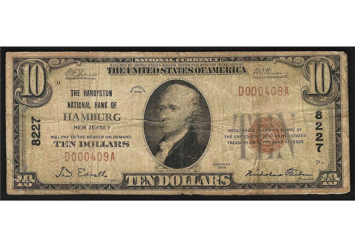 One 1929 $10 Hamburg New Jersey National Currency Bank Note, this is a very rare note as only 5 "small" notes are known.
